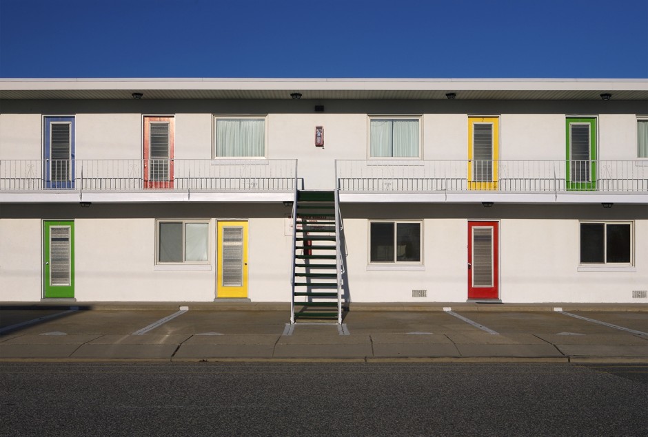 He realized that the hamlet’s mid-century motels could disappear without much notice, giving way to a rubble-strewn lot or retooled as unrecognizable condos, clad in vinyl siding and a shingled roof. So Havens spent a decade crafting a photographic eulogy for the beach town’s mid-century structures—often, two squat floors arranged in an L-shape and hiked up on stilts. More than 100 of those images have been compiled into a book, Out of Season: The Vanishing Architecture of the Wildwoods (Booth-Clibborn, $55).