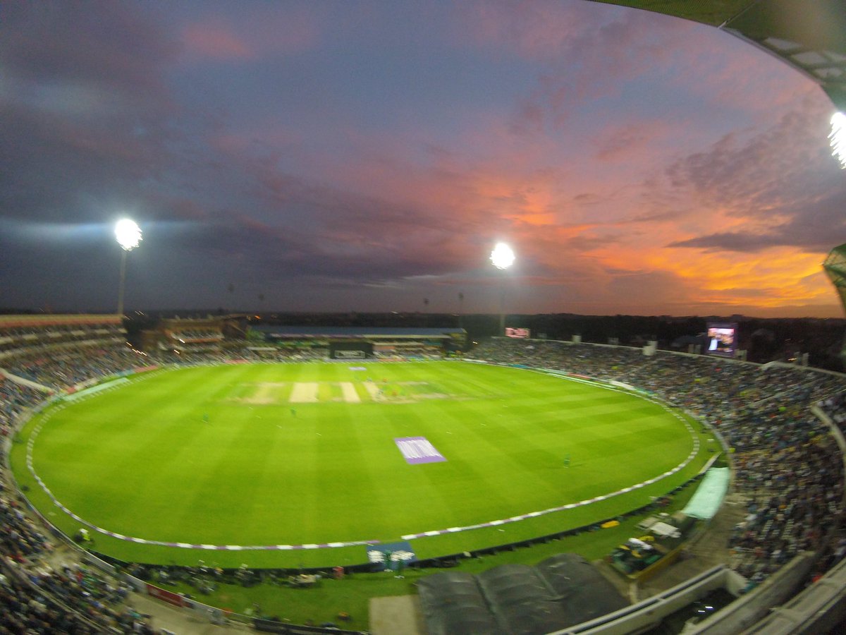 The sun sets at Headingley. Photograph: Gareth Copley/Getty Images